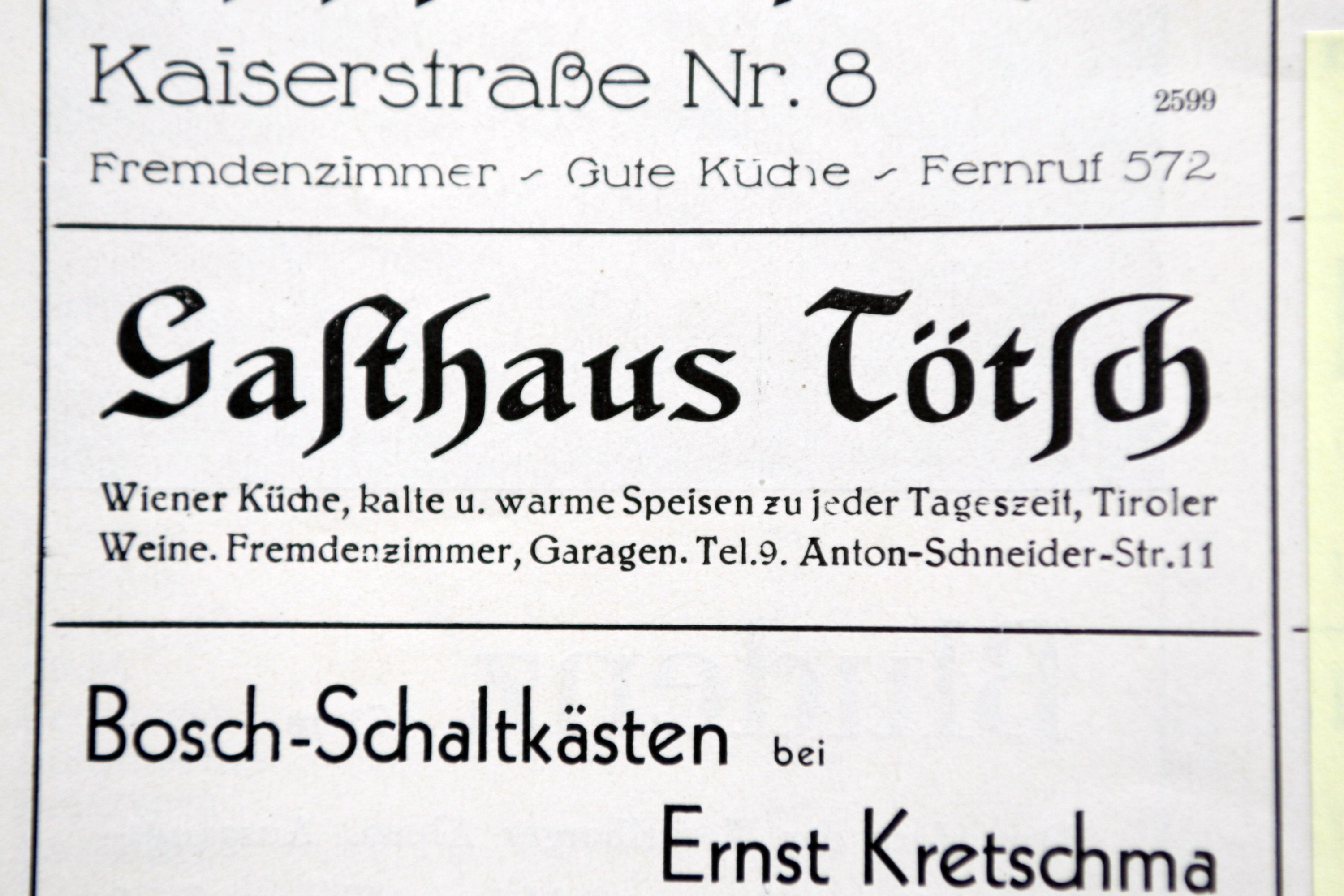 Der Bregenzer Salon kennt eine lange Tradition. Placidus Heim, der Ururgroßvater der heutigen Besitzerin, kaufte für seine Tochter Anna Maria Heim um 1910 das Haus und baute es zum Restaurant um. Sie führte es 40 Jahre lang als Witwe mit ihren sechs Kindern. Das Restaurant Heim bot gutbürgerliche Küche und im Erdgeschoss für 50 Personen Platz. Bald wurde daraus das bekannte Gasthaus Tötsch, und ging als solches in die Geschichte von Bregenz ein. Wichtige Sitzungen, auch der Landesregierung, zahlreiche Feste während der Faschingszeit, Feiern jeder Art, Tagungen von Vereinen, sowie so manche Vorbesprechung zur Gründung der Bregenzer Festspiele fanden hier statt.